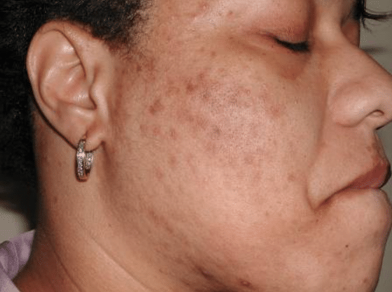 Brown/dark patches: Post‑Inflammatory Hyperpigmentation (PIH)