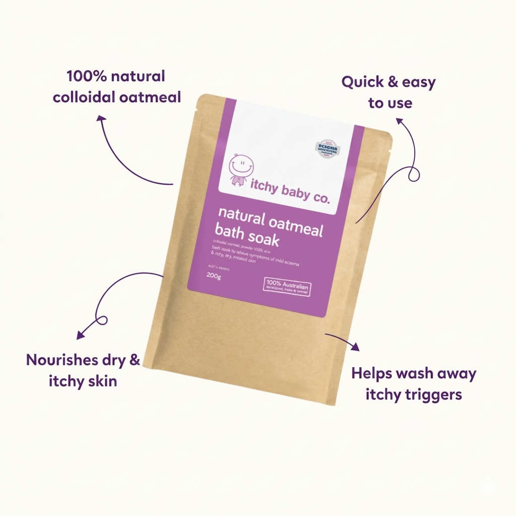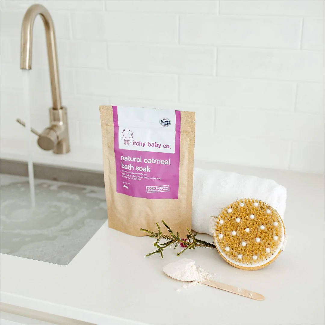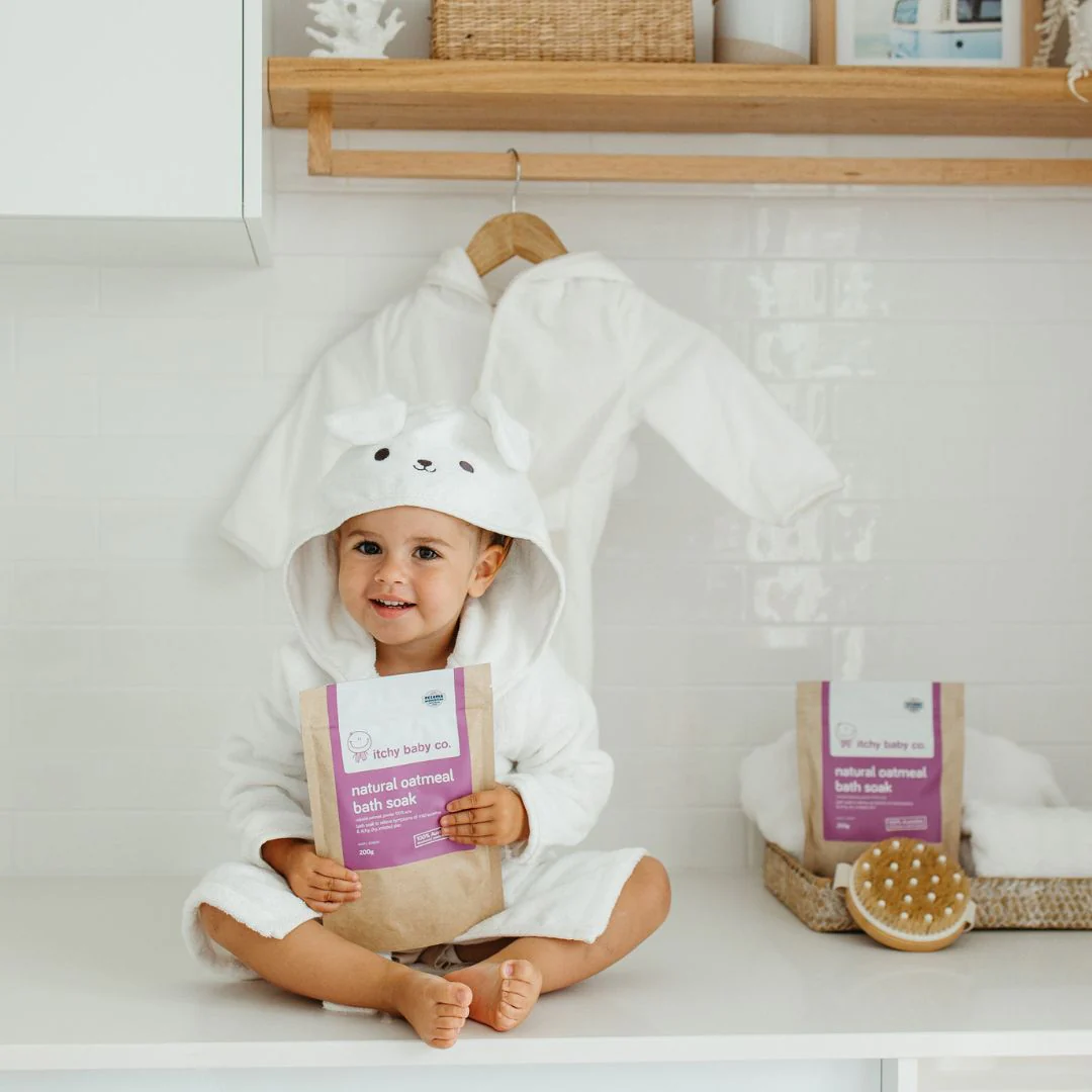 Oats contain a heap of natural properties which are proven to help relieve the symptoms of dry skin. With softening, moisturising and antioxidant benefits, natural oatmeal is the core ingredient in our bath soaks. Bathing in colloidal oatmeal will soothe and protect your baby’s skin, while washing away triggers and pollutants which can sit on the skin. That means you don’t have to use any other soaps or washes which might be drying out the skin.