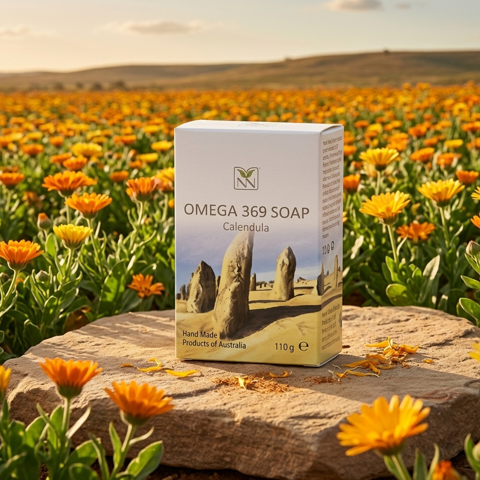 Omega 369 Calendula handmade soap is truly one of life’s treasures. With its natural fragrance, rich lather and benefit, it is mild and gentle for the skin. The handcrafted soap is made from the finest natural ingredients and pure oils to ensure quality and continuing freshness. Omega 369 soap is made with 100% pure emu oil & Calendula essential oil together with the finest natural ingredients.
